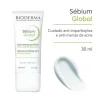A linha Sébium trata peles mistas, oleosas e acneicas. A pele muda durante a puberdade: ela fica mais espessa, oleosa e irregular. É comum o aparecimento de cravos e espinhas que, em alguns casos, continuam a se manisfestar na idade adulta. A BIODERMA oferece uma nova geração de cuidados para peles oleosas e acneicas que agem diretamente nas causas das imperfeições, através da patente Fluidactiv®, encontrada em todos os produtos da gama Sébium. Indicação: • Pele mista; • Pele oleosa; • Pele acneica; Recentes avanços no campo da dermatologia deram origem à Sébium Global Bioderma, o 1º cuidado que corrige biologicamente a qualidade do sebo, prevenindo a formação do comedão, agindo nas causas e consequências da acne. Sébium Global Bioderma age nas causas da acne normalizando a qualidade do sebo através da combinação exclusiva de sua patente dermatológica Fluidactiv® em associação com o Bakuchiol. Com efeitos similares aos da vitamina E, essa associação ajuda a pele à regular a qualidade do sebo, restaurando-o ao seu perfil saudável, prevenindo o aparecimento de comedões e pontos pretos. Sébium Global Bioderma também age nas consequências da acne, desobstruindo os poros devido à ação de seus 3 ativos queratolíticos, o Éster de AHA, o Ácido Cítrico e o Ácido Salicílico, enquanto que a combinação do Gluconato de Zinco com a Enoxolona acalma e reduz vermelhidões provenientes da acne. Sébium Global Bioderma restabelece a função hidratante e protetora do sebo graças à glicerina e controla a oleosidade da pele graças à seu ativo seborregulador Gluconato de Zinco. Benefícios: • Perfumado; • Hipoalergénico; • Sem parabenos; • Não comedogénico. Modo de Usar: Aplicar 1 a 2 vezes ao dia em monoterapia ou em associação com tratamentos dermatológicos na pele previamente limpa e seca.