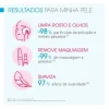 • Remove 99% a maquiagem e o protetor com cor do rosto e da região dos olhos²